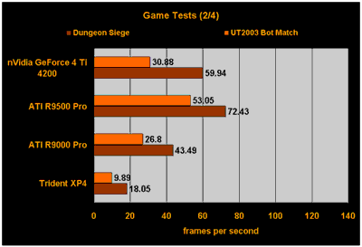 Az olcsó DirectX 9 kompatbilis videokártyák megjelenését lehetővé tévő Trident XP4 chipek nagy feltűnést keltettek bejelentésükkor, az eredményeket látva azonban elmondhatjuk, mindez csupán szép álom maradt. Ez a teljesítmény még a belépő szinthez is kevés, pedig mint Le T. Nguyen, a Trident marketingalelnöke mondta, "...mi a jelenleg csúcskategóriás teljesítmény 70%-át kínáljuk ezek árának negyedéért...". Mindebből a negyed lett igaz, de ez is inkább a sebességre jellemző.