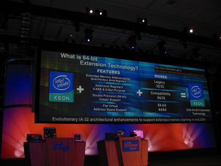 A vállalat az idén februárban megrendezett Intel Developer Forumon jelentette be, hogy Nocona magos Xeon és Prescott magos Pentium 4 processzorai 64 bitesek. A Prescott magos chipekben eleddig nem aktiválták a 64 bites képességeket, mivel a cég szerint egyelőre nem érhető el jelentős számú asztai operációs rendszer és alkalmazás, amely kihasználná a 64 bit lehetőségeit. Amint az ismert, a Microsoft a negyedik negyedévre ígéri a Windows XP és a Windows Server 2003 64 bites változatainak végleges verzióját.