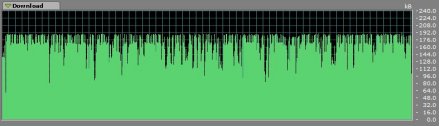 A tüskékkel tarkított letöltési grafikonon az átviteli sebesség a 170-190 kilobájtos átlagról ritkán esik 80 kilobájt alá