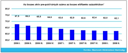 Az NHH jelentéséből kiderül, hogy az év második negyedévében az aktív kártyák körében megtorpant a post-paid, azaz havi előfizetéssel összekötött SIM-kártyák részesedésének növekedése, miközben a pre-paid, azaz feltöltőkártyás konstrukciót használó ügyfelek számának csökkenése megállt. A feltöltőkártyás megoldás 2003 elején volt a legnépszerűbb, akkor az ilyen SIM-ek részesedése a teljes bázison belül 78,82 százalékos volt. Azóta ez az arány egészen az első negyedév végi 62 százalékos részesedésig folyamatosan csökkent, a második negyedév végére azonban 0,1 százalékkal, 62,1 százalékra nőtt.