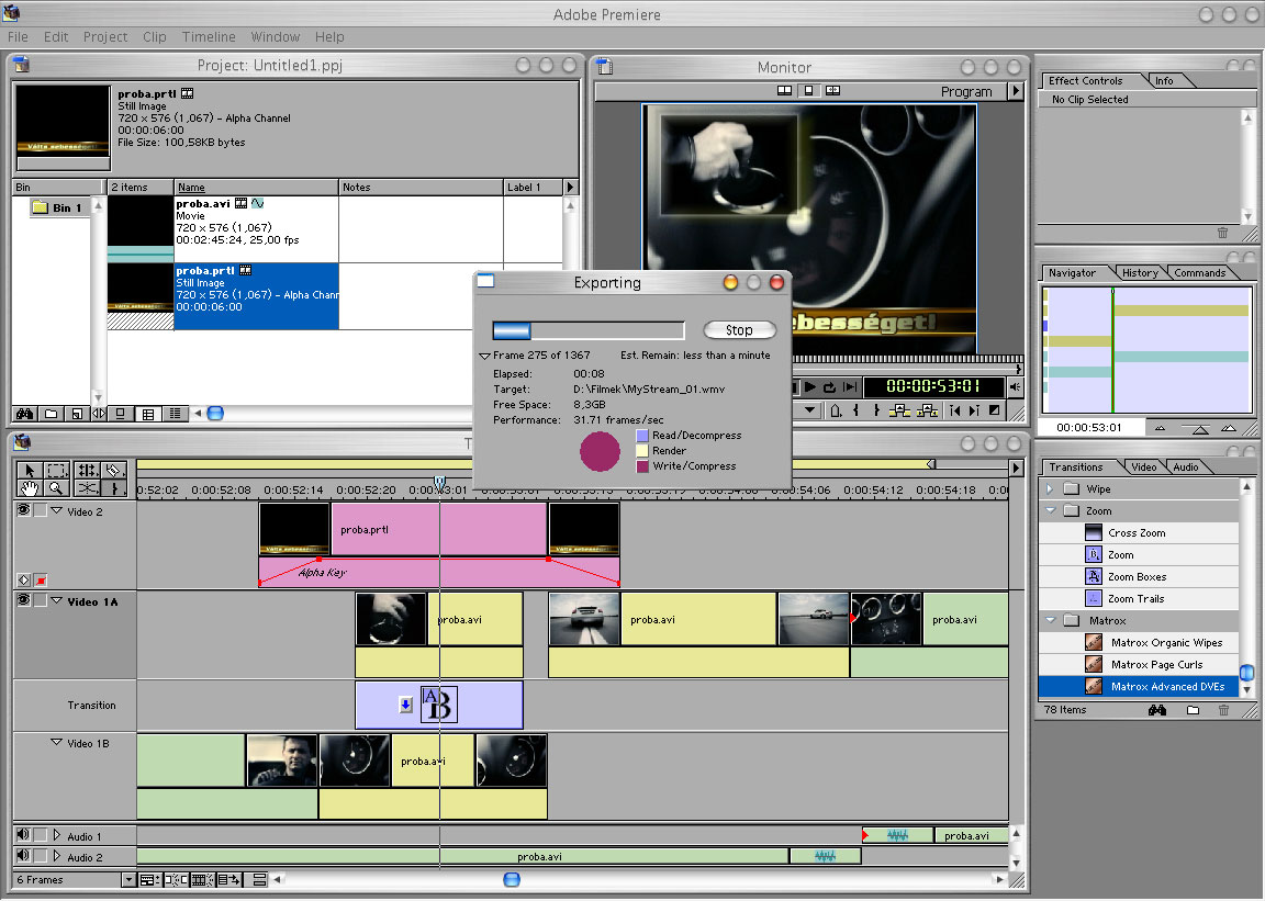 MPEG-export, Windows Media Video készítés közvetlenül a Premiere-ből