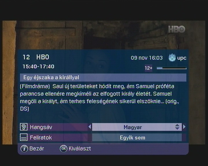 A felvétel és az emlékeztető viszont teljesen jól funkcionál. Ha a műsorújságban egy éppen futó adásra nyomunk "OK"-t, akkor odaugrik, ha egy még el nem kezdődöttre, akkor egy kis óra ikon jelenik meg felette, s az indulás előtt egy perccel egy figyelmeztető ablakot dob fel. Ha pedig bármelyik műsor felett a felvétel gombot nyomjuk meg, akkor időzíti a rögzítést, illetve meg lehet adni, hogy csak azt az adást vegye fel, vagy a sorozat minden tagját. Összességében megszokható, elfogadható rendszer a UPC Digital is, főleg azoknak, akik nem láttak alternatívákat. A csúnya, pixeles és régies menük, szövegek nem csábítóak, nem szépek a szemnek. Funkcióiban persze versenyben van a UPC is, de a konzumer világban az már nem mindig elég.