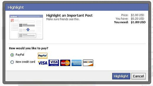 Jelenleg a felhasználók számára minden funkció ingyenes a Facebookon, míg a vállalatok a jelenlét aktívan tartásáért hirdetések formájában fizetnek. Az a cég, ami nem fizet, az gyakorlatilag láthatatlanná válik a közösségi hálózatban. Ez az alapfilozófia azonban még mindig kevés ahhoz, hogy a Facebook hozza az elvárt bevételi számokat. A cégek nem terhelhetőek tovább, hiszen már így is felháborodtak sokan, hogy azután, hogy a cégek szinte kötelező módon kell hirdessenek, még azért is fizetniük kell idéntől, hogy a hirdetésük biztosan megjelenjen (Premium Ads). A hirdetők önmagukban mégsem fogják eltartani a vállalatot, az üzleti modellnek mindenképp el kell tolódnia egy olyan irányba, ahol maguk a felhasználók is valamilyen módon befizetőkké válnak.
