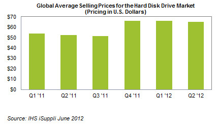 Az idei első negyedévben az ASP továbbra is kitartott 66 dolláron, a második negyedévre pedig 65 dollárra csökkent. Az elemzőcég szerint az árak csökkenése továbbra is nagyon lassú lesz, 2014-ig nem áll vissza az áradások előtti, tavaly harmadik negyedéves szintre. Thaiföldön azóta persze levonult az ár és a gyárakban is helyreállt a rend, azonban két, az ipart alapvetően meghatározó ügylet is lezajlott: a Seagate kezébe került a Samsung merevlemezgyártó részlege, a Western Digital pedig a Hitachi GST felvásárlásával erősített.