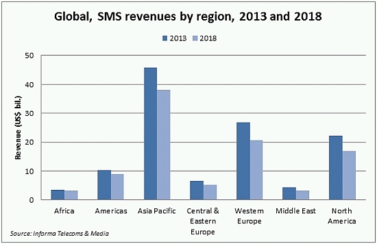 Az Informa által vizsgált 59 ország és 7 régió közül gyakorlatilag mindegyiket érinti az SMS-ekből származó bevételek csökkenése a 2018-ig tartó időszakban, noha néhány piac számára a következő két-három év még növekedést tartogat, ilyen többek között Argentína, Kolumbia, Egyiptom, Japán, Kenya, Nigéria, Törökország, Uganda és az Egyesült Arab Emirátusok. Gareth Sims, az Informa Telecoms & Media előrejelzésekkel foglalkozó vezetője szerint ugyanakkor az üzenetküldés piaca ugyanis rendkívül sokszínű, így korai lenne teljesen leírni az SMS-eket amelyek számos helyzetben még mindig a leghatékonyabb megoldást jelentik.