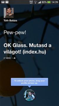 A zárképernyőn így mindig a legfrissebb posztok pörögnek majd az általunk követett ismerősöktől és oldalaktól. Oldalra húzva lapozni lehet ezeket, egy érintéssel pedig előhozhatóak az adatok, hogy mennyien lájkolják és hány komment van alattuk, csakúgy, mint egy átlagos Facebook-galériából is ismerős lehet. Kétszer rányomva egy elemre, ha az egy weboldal vagy bármilyen más egyéb link, akkor ugrunk a böngészőbe vagy a kliensbe és megnyílik a tartalom. Ami azért kellemetlen, mert így okafogyottá válik a zárképernyő, a mobilunk simán elkalandozhat a zsebünkben kallódva.