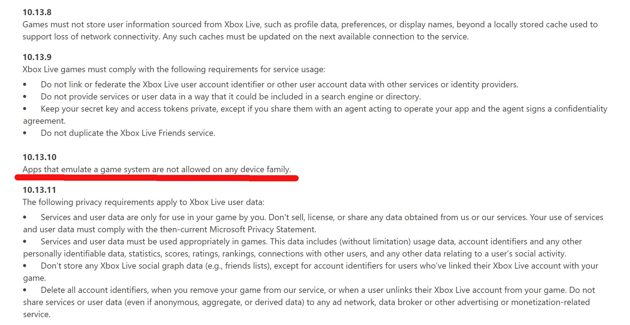 Kitiltotta alkalmazásboltjából a különféle, játékokhoz köthető emulátorokat a Microsoft. A cég a Creators Update érkezésével párhuzamosan változtatott szabályzatán, amely szerint mostantól a Windows Store virtuális polcain semmilyen eszközökhöz (PC, konzol egyaránt) kapcsolódóan nem lehet játékokat vagy játékrendszereket emuláló, vagy emulációra építő alkalmazás.