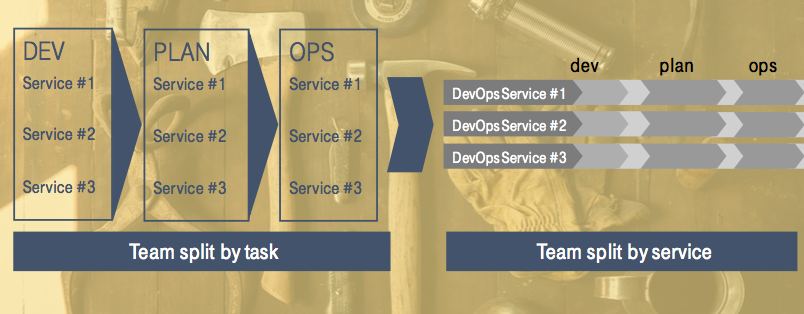 További tapasztalat, hogy az egy-egy szolgáltatásra beállított devops-csapatok hajlamosak szem elől téveszteni az összképet és csak a rájuk bízott rendszerekkel foglalkozni, saját kis kertjüket ápolgatni. Márpedig az üzlet egész folyamatokban gondolkodik, amelyek sok, egymással integrált, egymást kiegészítő szolgáltatásból állnak, így az egyes csapatok között is meg kell tartani a kommunikációt és az end-to-end szemléletmódot, erre meg kell találni a helyet a szervezetben.