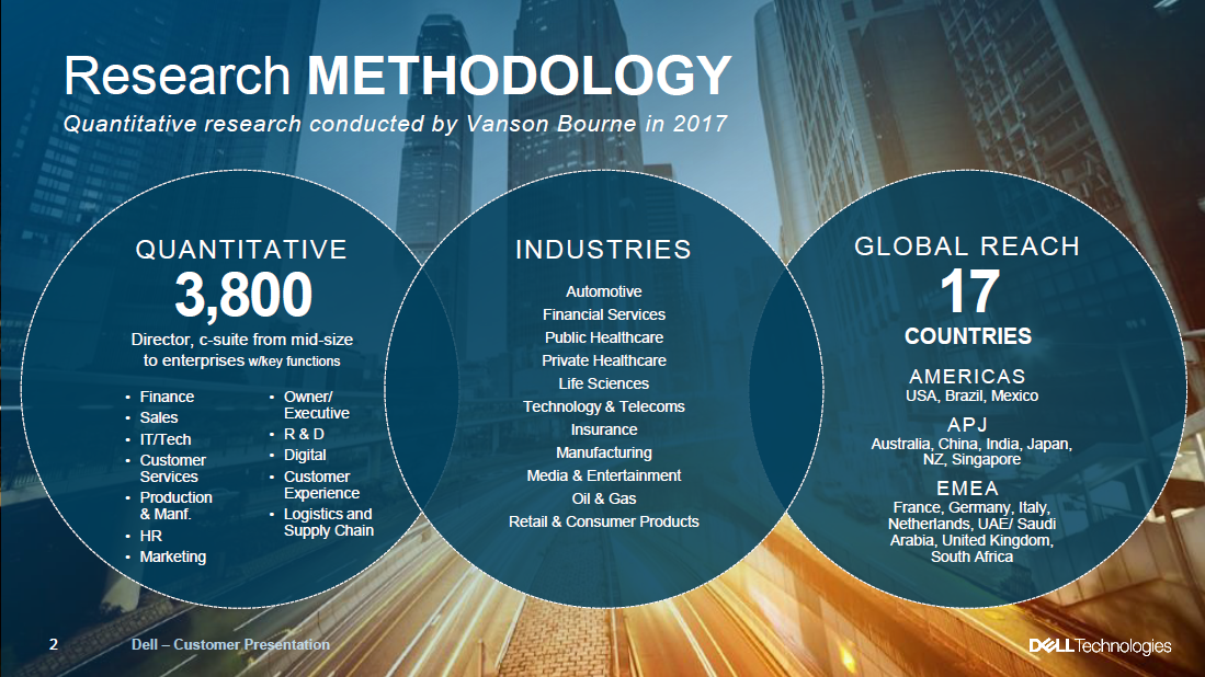 A kutatást elsősorban azért készíttette a Dell EMC, hogy pontosabb képet kapjon a 2030-ig várható igényekről, változásokról. Az eredmények alapján a vállalat képes lehet pontosabban behatárolni, hogy az általa kínált termékpaletta miként illeszkedhet az átalakuló igényekhez, illetve esetlegesen milyen módosításokat érdemes eszközölni a jövőbeni szükségletek kielégítéséhez. Hegarty szerint privát szeplőként (a cég évekkel ezelőtt kivonult a tőzsdéről) a Dell EMC rugalmasabb, az ügyfelek igényeinek könnyebben megfelelhet, amelyből hosszabb távon természetesen vállalata is profitálhat. A régiónkért felelős szakember továbbá elmondta, hogy határozottan elégedettek a Dell EMC hardverekre alapozó stratégiájával, illetve annak eddigi eredményeivel.