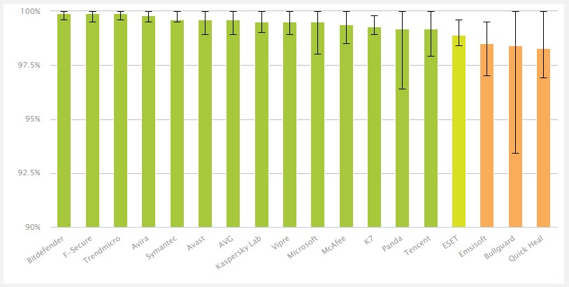 Védelem szintje (vállalati teszt, 2018 július-november, AV-Comparatives)
