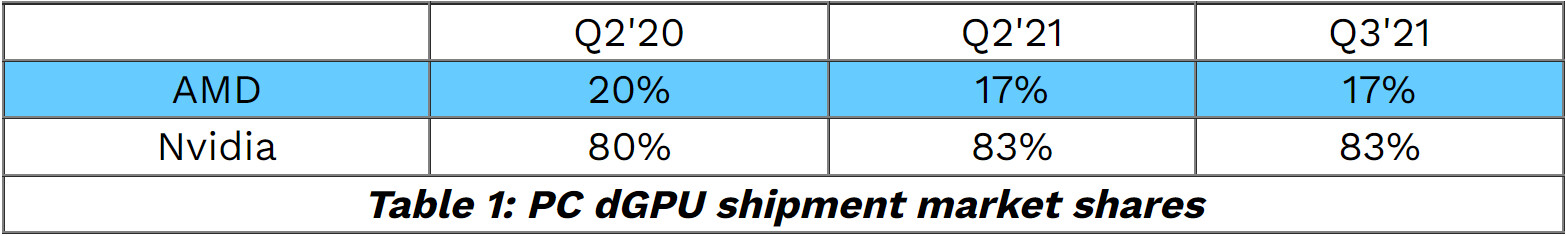 A tovább bővülő piacból az Nvidia tudott profitálni, amely egyes videokártyáinak hála 3 százalékponttal növelte részesedését az AMD-vel szemben. Ennek köszönhetően a GeForce-okat kínáló cég utcahosszal vezet konkurense előtt, hisz míg az Nvidia 83, addig az AMD csupán 17 százalékos szelettel rendelkezik a PC-s videókártyák piacán.