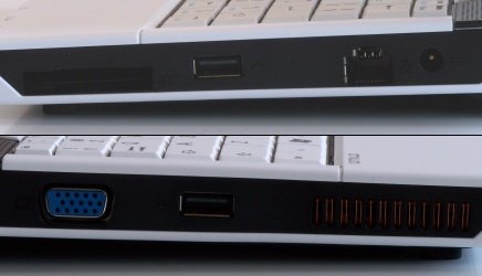 A gép a csatlakozókat és az interfészeket tekintve átlagosat nyújt, pontosabban van, amiből az átlaghoz képest kevesebbet (csak két USB kapu található rajta), van amiből többet (az Amilo Mini egyike azon kevés netbookoknak, amelyeken ExpressCard foglalatot is elhelyeztek). A gép oldalain és előlapján a már említettek mellett VGA-kimenet, hangcsatlakozók, Ethernet-csatlakozó és memóriakártya-olvasó található, a szellőzőnyílás balra fújja ki a meleg levegőt, közvetlenül a baloldali tenyértámasz alatt.